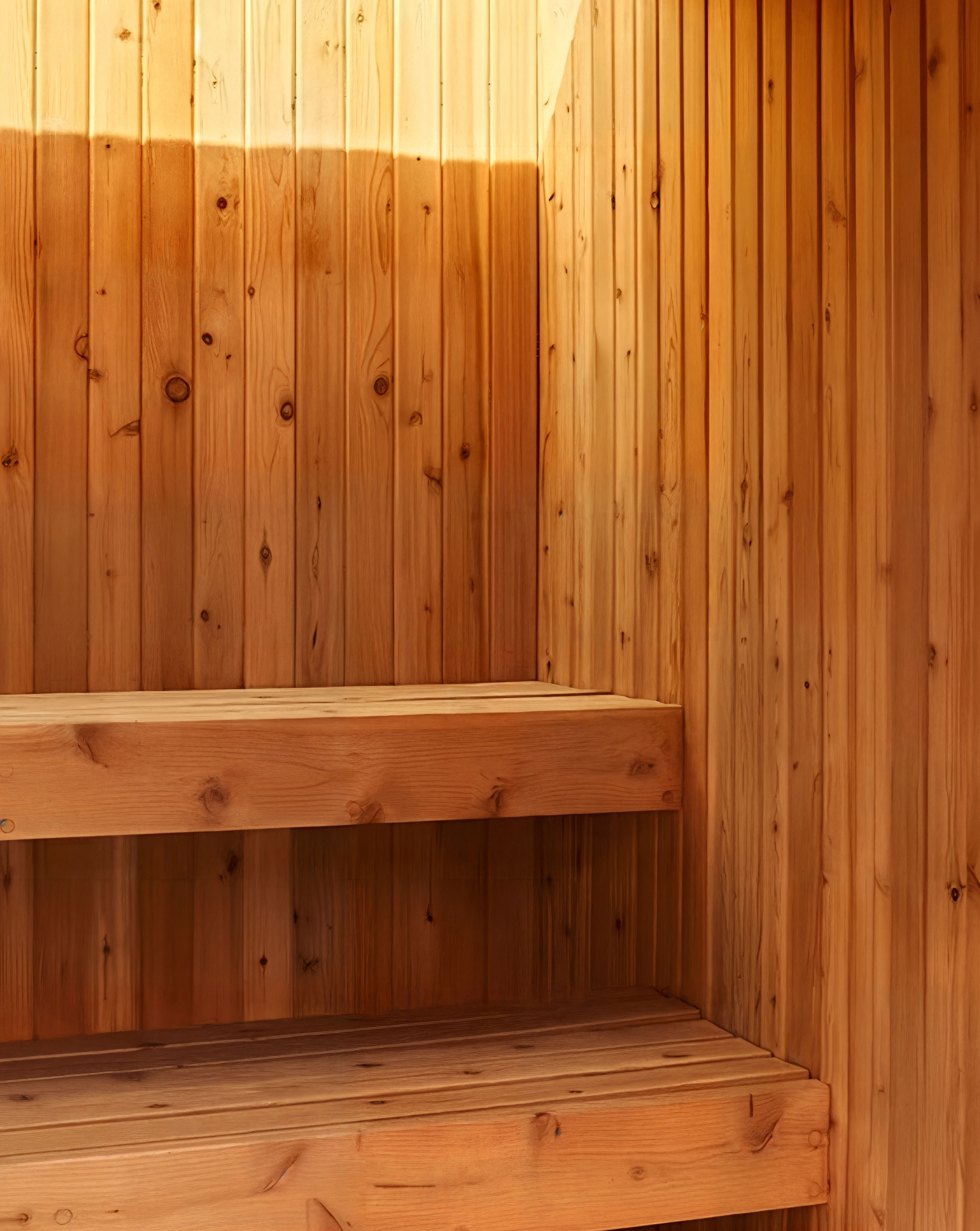 A Finnish-style sauna built from timber with even heat up to 90°C. Designed for shared use and everyday comfort.