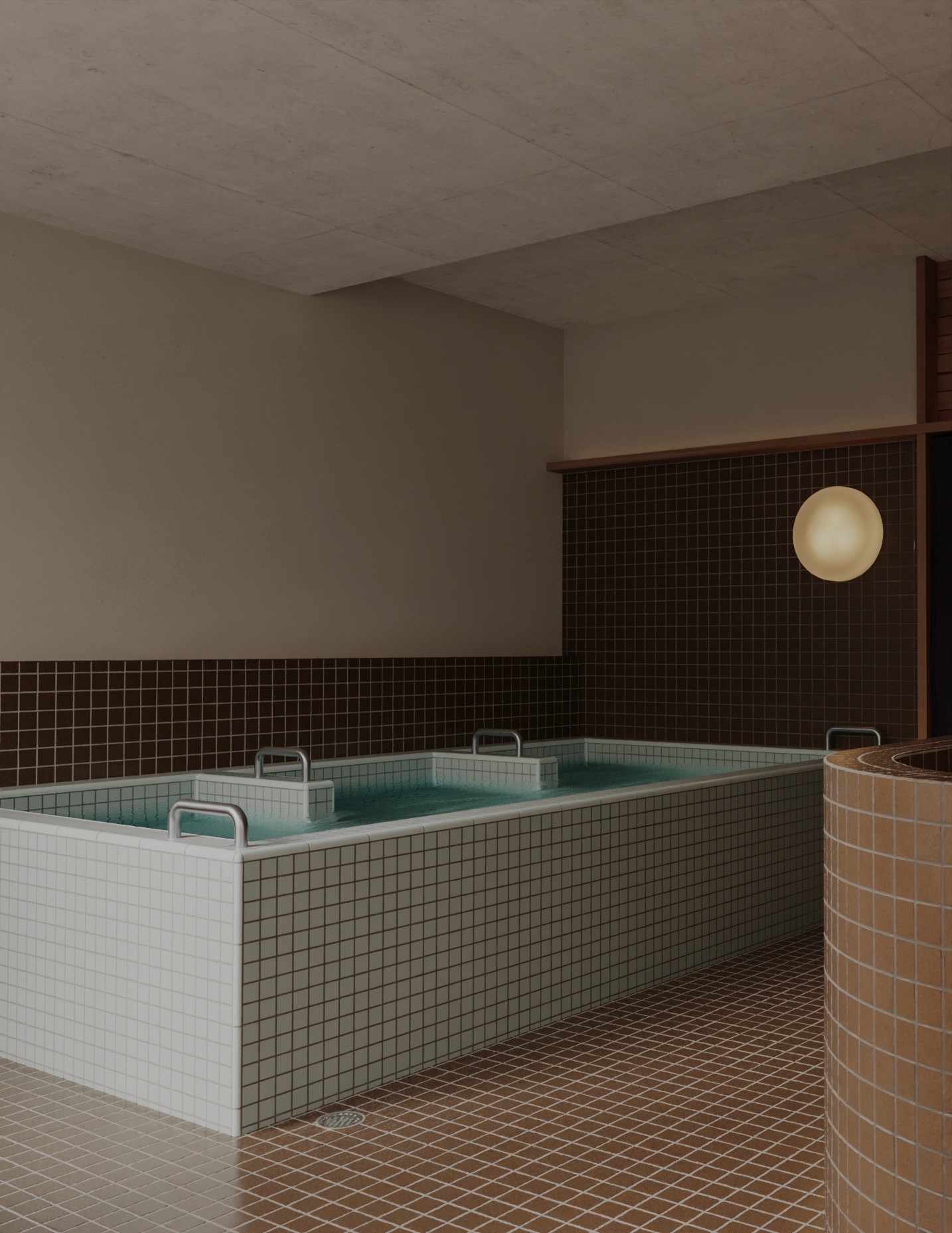 A purpose-built cold bath inspired by Japanese sentō design. Set between 12-15°C, it pairs perfectly with the heat.