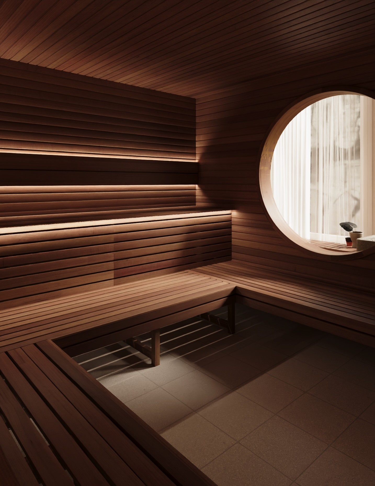 A large, traditional sauna built for shared use. Kept between 85-95°C, it sits at the centre of the space and gives everyone room to settle into the heat in comfort.